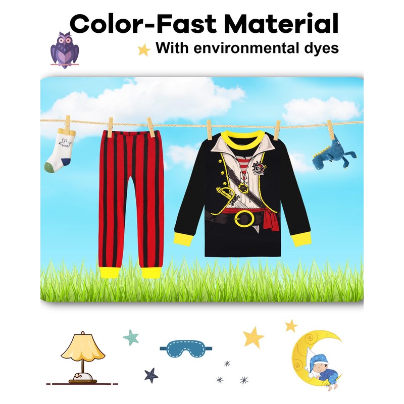 - Cool Prints & Perfect Choice: Colorful and diverse design Boy's Pajamas Sets. The professional team designs feature fashionable and unique theme patterns, such as pirate themes, dinosaur themes, and space themes, which are sure to delight any toddler boy. And there are great boys jammies for sleeping or playing at home, as well as cool presents for kids' birthdays, parties, festivals, and so on