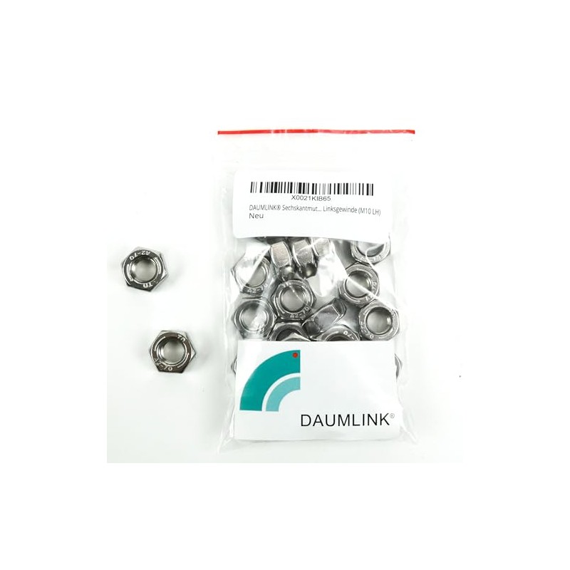 - DAUMLINK Hexagonal nut left-hand thread DIN 934, material: stainless steel V2A (similar to UNI 5588 EN ISO 4032), your counterpart for screw or threaded bolts with left-hand thread