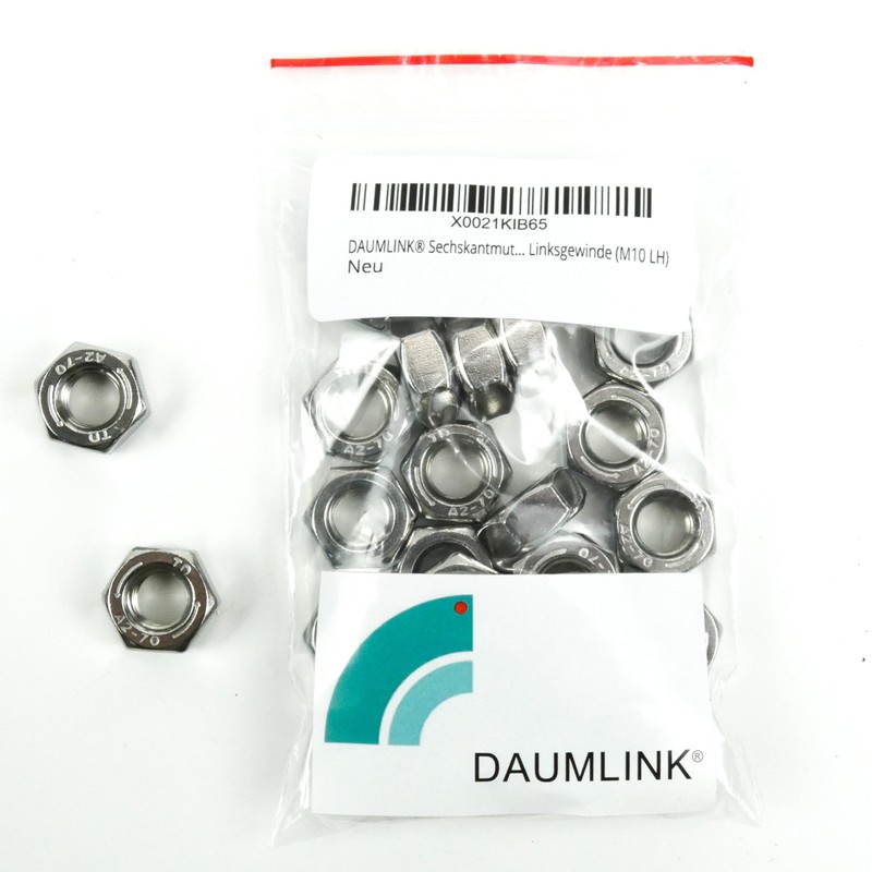 DAUMLINK® Hexagonal nut, left-hand thread, DIN 934, material: stainless steel V2A (similar to UNI 5588 EN ISO 4032), your counterpart for screw or threaded bolts with left-hand thread (M10 LH)