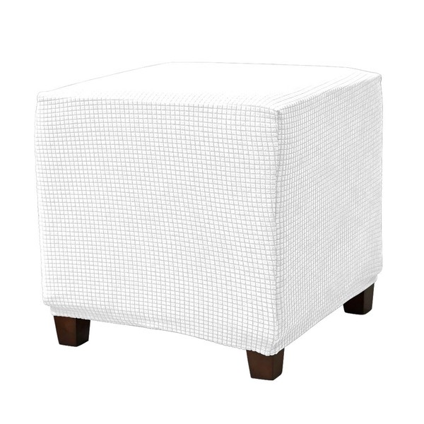 Daunkang Ottoman Cover Square Jacquard Ottoman Slipcover Storage Ottoman Protector Cover for Footrest Foot Stool Stretch with Elastic Bottom Medium White