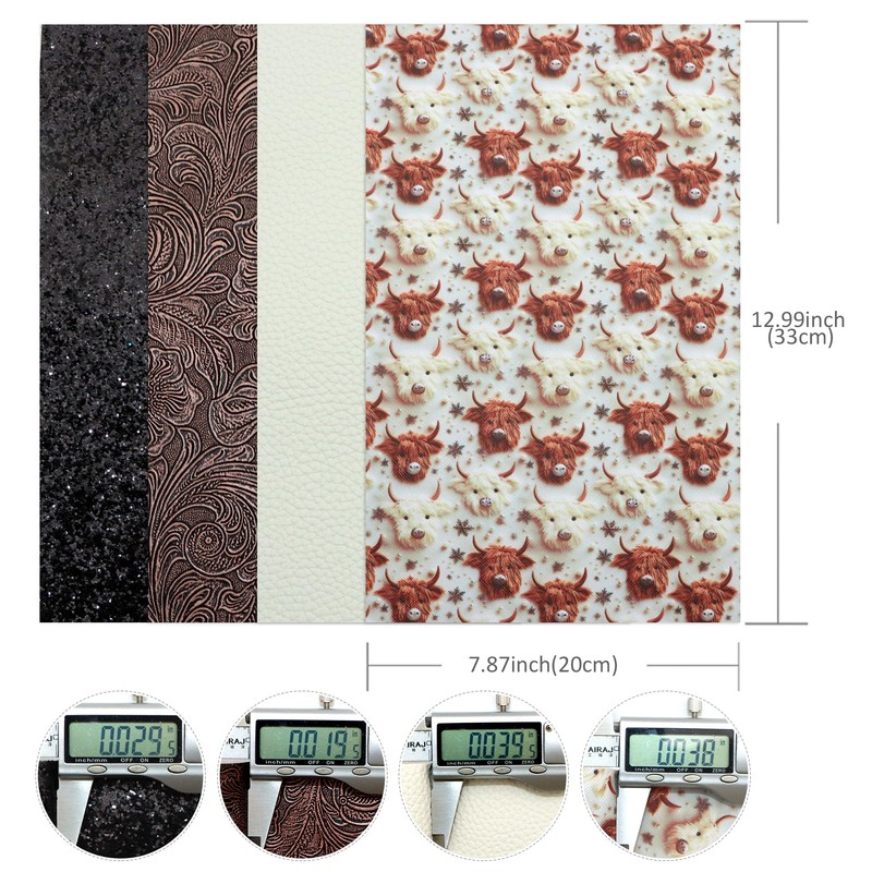 - Item measurements:each sheet measures approx 7.7" x 12.9" (20 cm x 33 cm),thickness of 2 kinds of sheets is different,leather sheet approx 0.032inch,printed sheet approx 0.038inch,all of our sheets are hand cut and will vary slightly in size