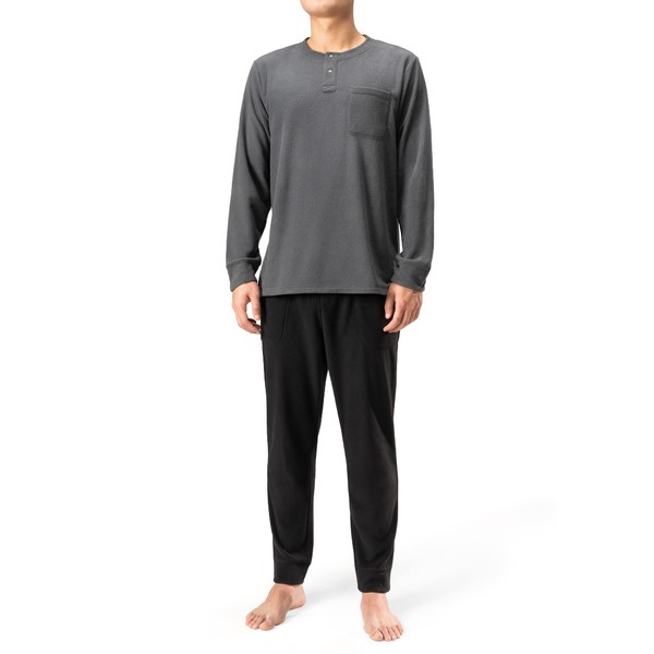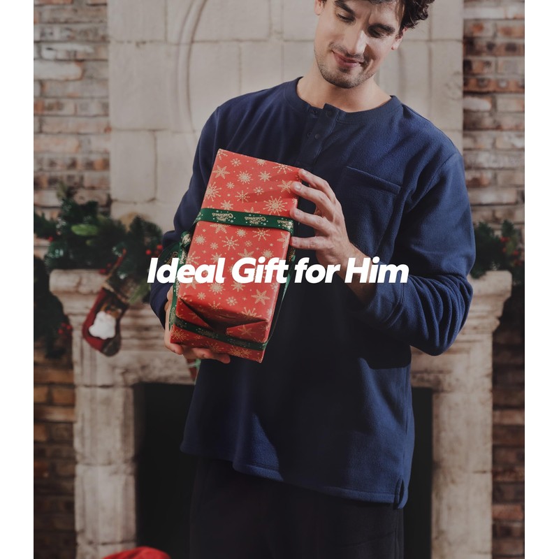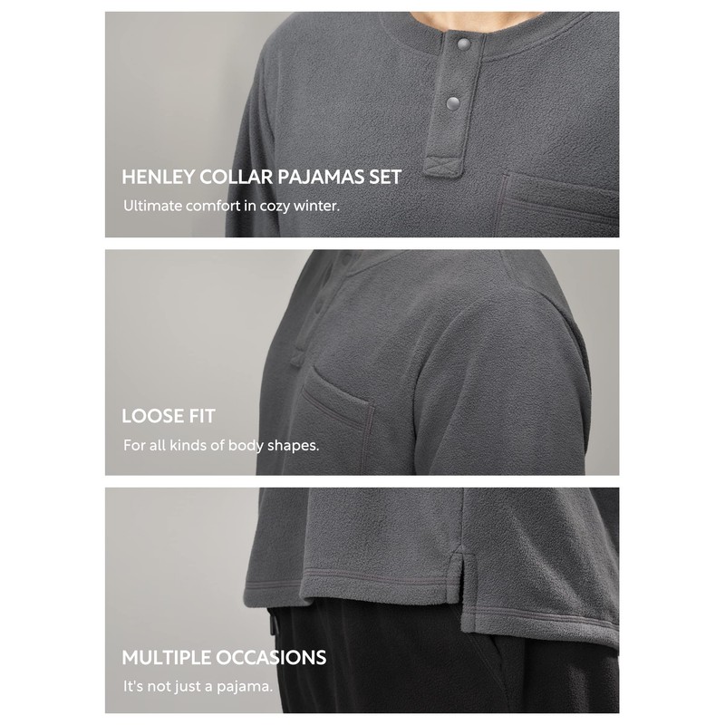 - ClASSIC & DURABLE PJS SET: The mens loungewear set with stylish henley collar design,and the polar fleece pajamas is no pilling,can stand the test of time.