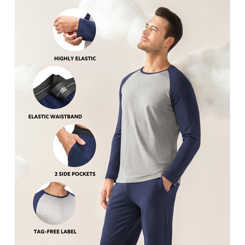 - Round Neck Men's PJ’s Top - Round neck design is the best choice to lounging around the house, matches with your daily leisure home life.The sleeves are longer, looser and more comfortable with less friction on the shoulders.