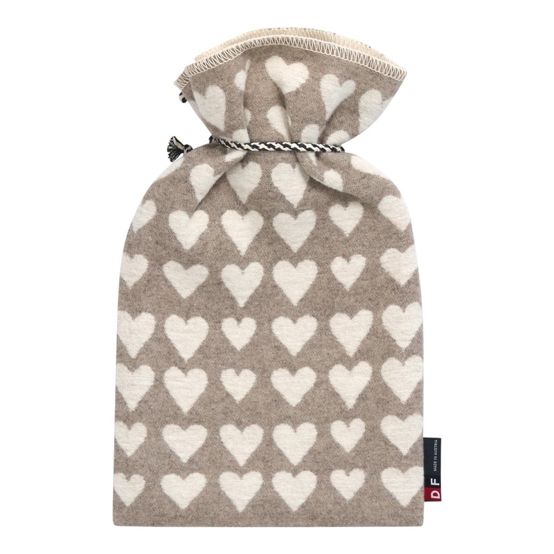 David Fussenegger Hot Water Bottle Hearts 2.0 Litres with Super Soft Flannel Cover Made from Recycled Cotton Sustainably Produced ÖkoTex100 GRS Made in Austria Colour Smoke