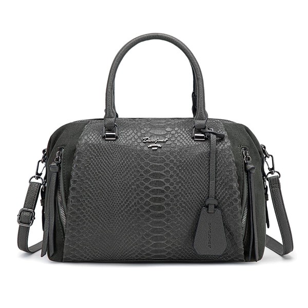 David Jones - Women's Bowling Handbag - Women's Bag PU Leather Snake - Elegant Handbag - Shoulder Bag Many Compartments Multiple Pockets - Shoulder Bag Tote Shopper Fashion Elegant, gray, Elegant,