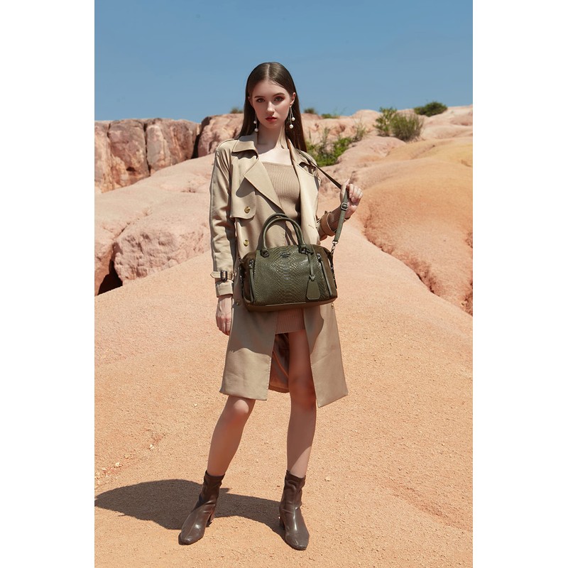 - Leather and features: high-quality PU faux leather. Snake look. Leather bag look shoulder bag. Metal parts black colour.