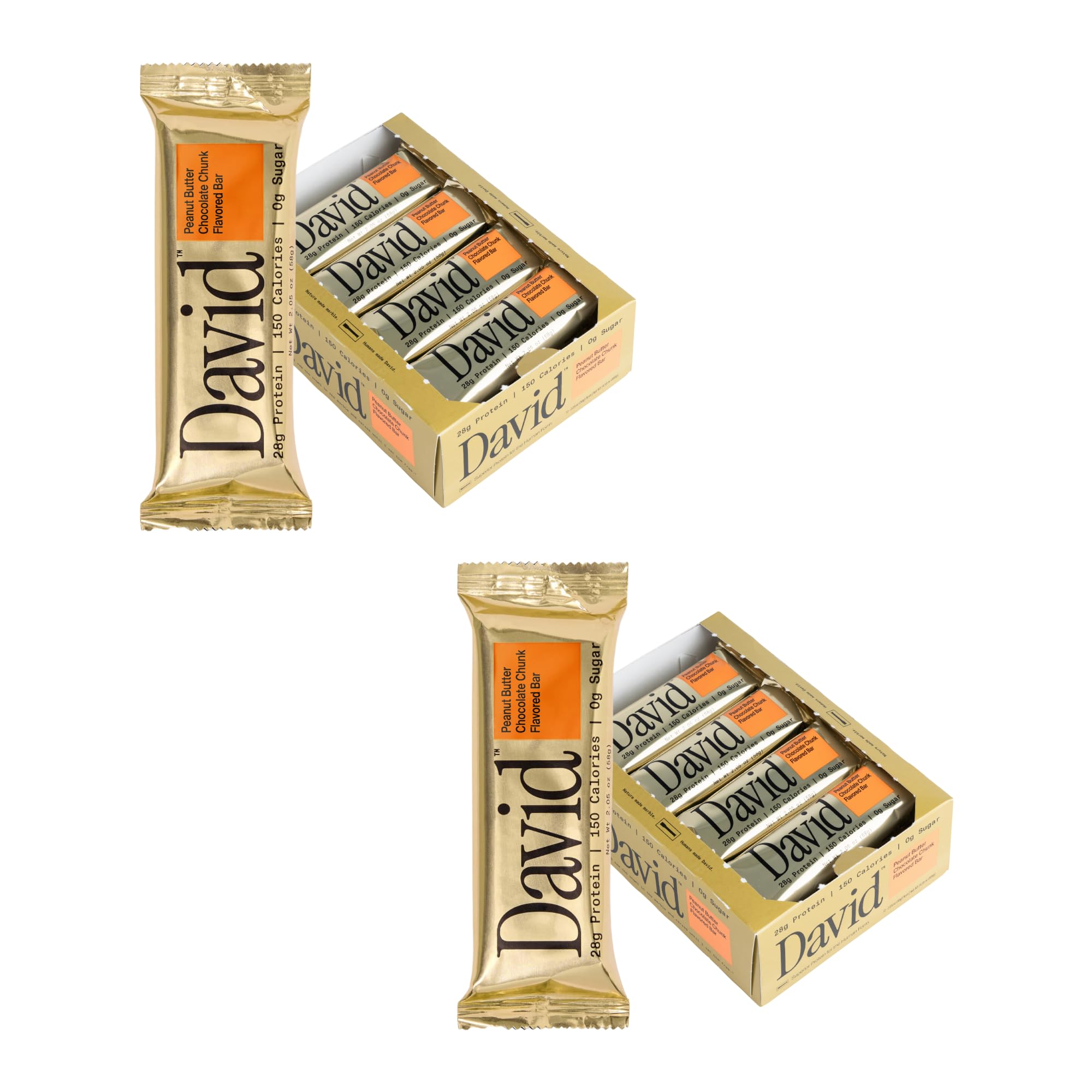 David Protein Bar, Peanut Butter Chocolate Chunk, 24 Protein Bars | 28g of Protein | 150 Calories | 0g of Sugar - High Protein, Low Carb, Gluten Free Protein Bar (2 Pack - 24 ct.)