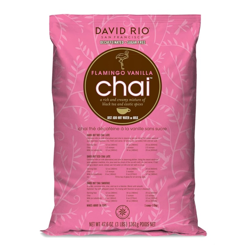 Flamingo Vanilla Decaffeinated Reduced Calorie Chai Tea Latte Mix, 48 Oz, Decaf Black Tea, Organic Spices, Sugar Free, Dairy Free, Serve Hot or Cold, Just Add Water or Milk, 56 Servings