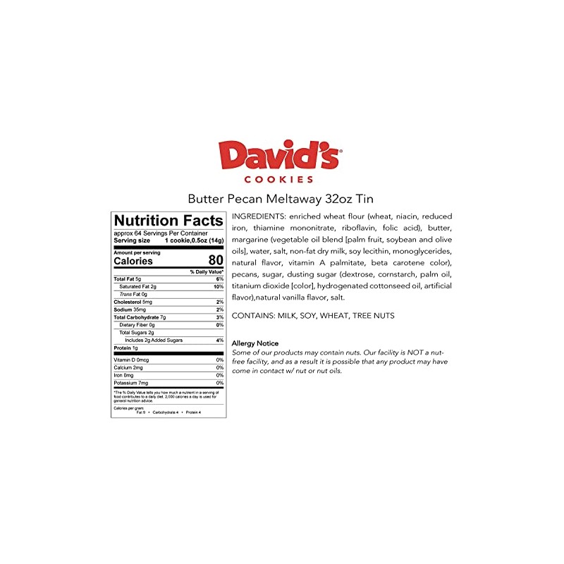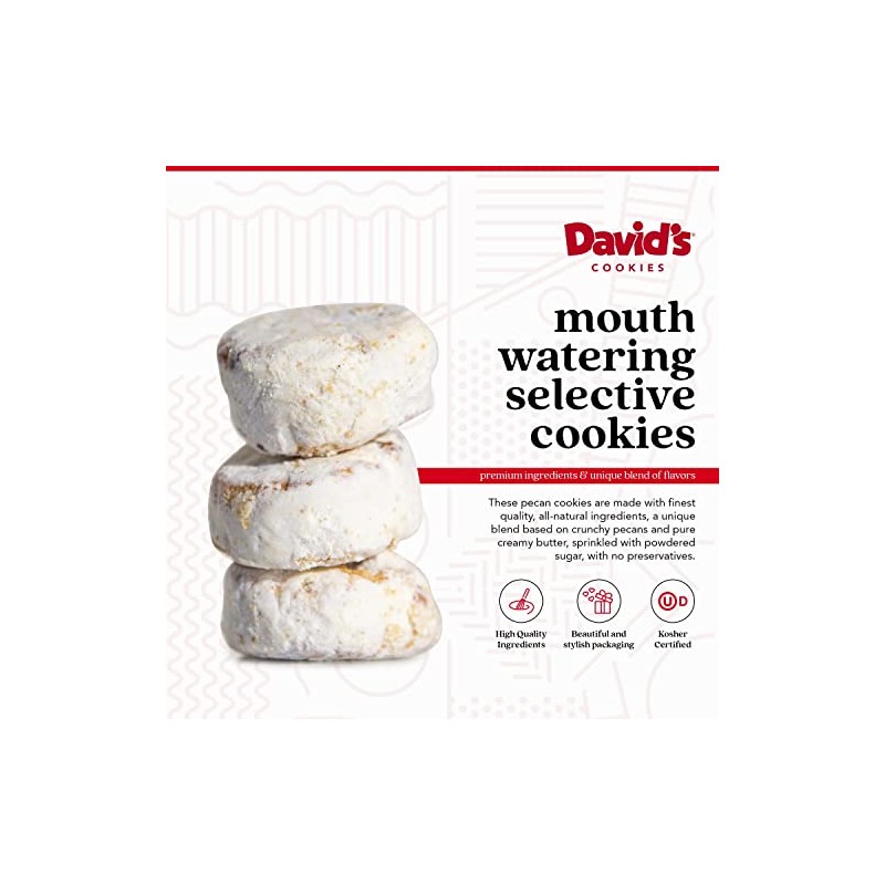 David's Cookies Gourmet Butter Pecan Meltaway with Crunchy Pecans and Powdered Sugar, All-Natural Ingredients, Kosher, Ideal Present for Special Occasions, 32 Fl Oz, Pack of 2