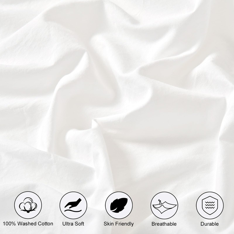 - PACKAGE INCLUDED: 1 pack white single 100% washed cotton fitted bottom sheet only, no pillowcase, king size measures 78"x80".