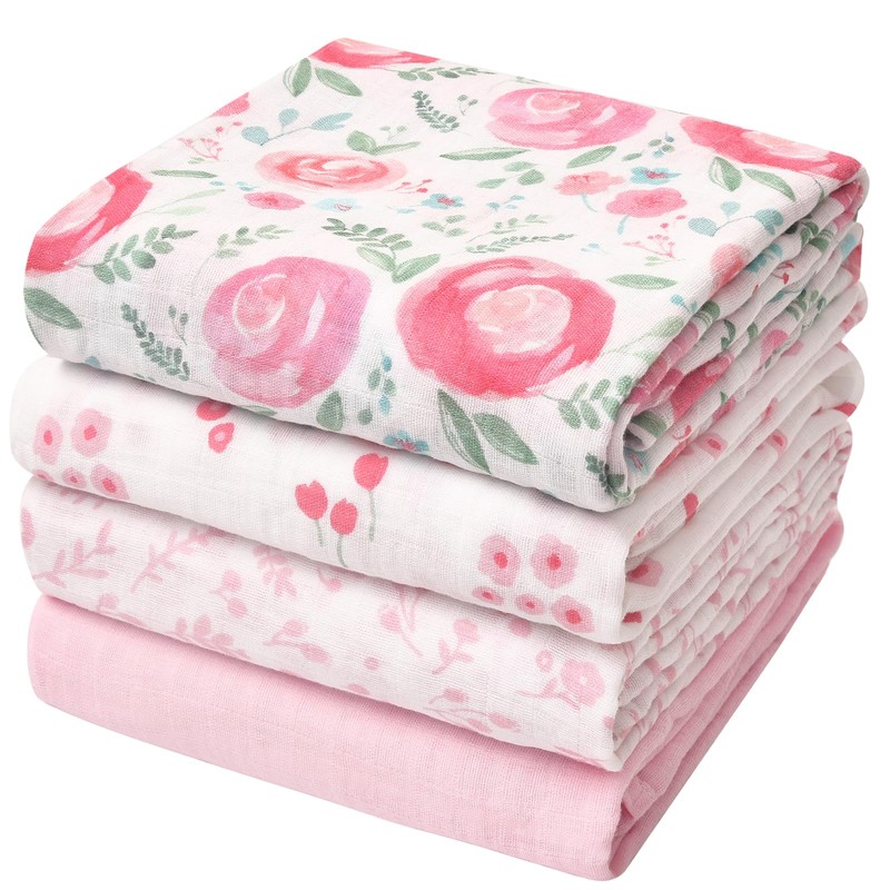 david's kids 4 Pack Baby Muslin Swaddle Blankets, 100% Cotton Swaddling Blankets Wrap for Girls, Ultra Soft Breathable Receiving Blanket, New Born Essentials, Floral