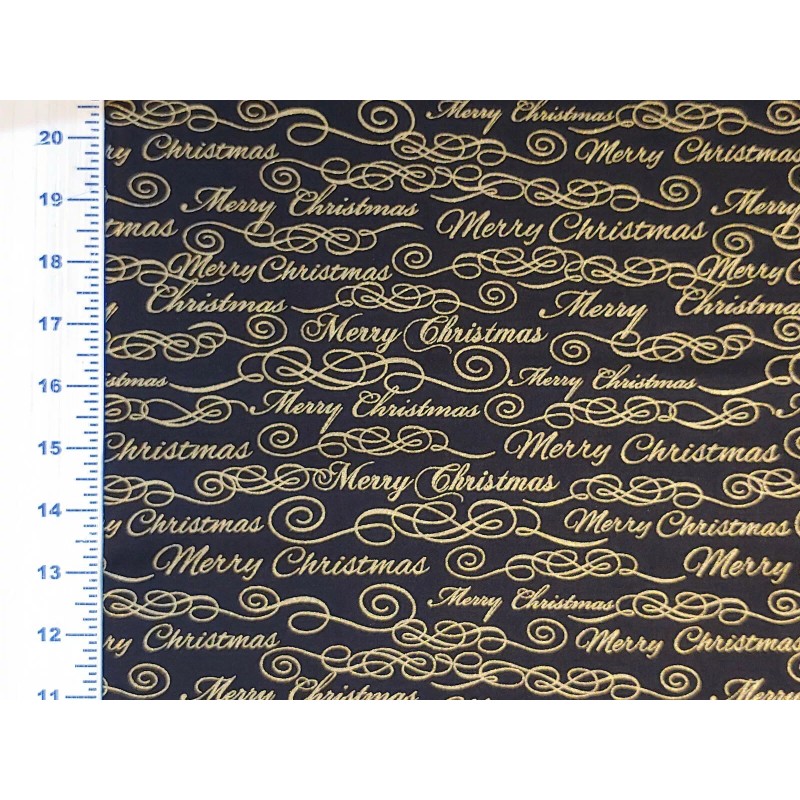 David Textiles Merry Christmas Black Fabric Metallic WINDHAM All Cotton Fabric HALF YARD BTHY