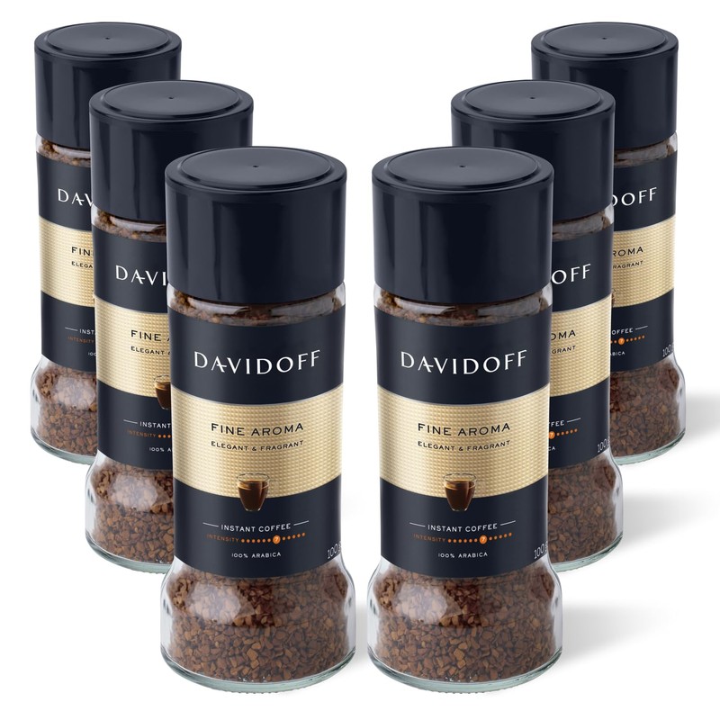 DAVIDOFF Fine Aroma Instant Coffee - Elegant and Fragrant - Medium Body with a Acidic Tang - 100% Arabica Beans - 7/12 Intensity - 6 x 3.52 oz