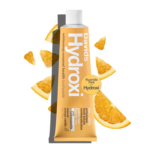 Davids Hydroxi Fluoride Free Nano Hydroxyapatite Toothpaste for Enamel Health & Whitening, Antiplaque, SLS Free, Kid Friendly Orange Vanilla Flavor, 4 oz, Made in USA