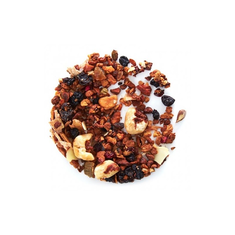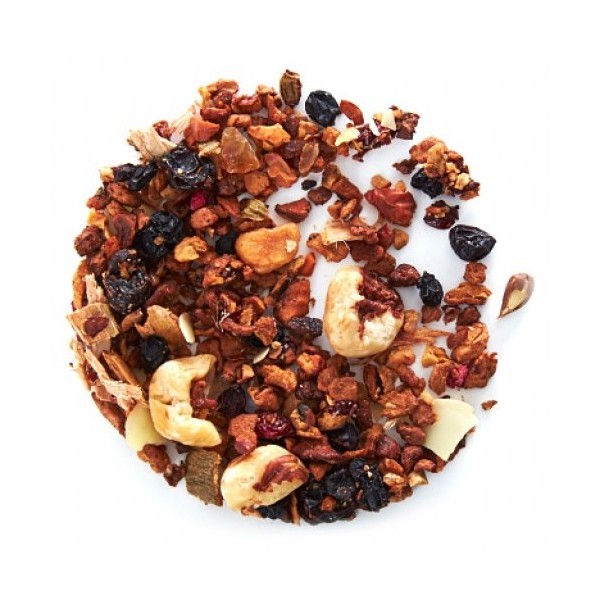 Apple, raisins, brown sugar, elderberries, willow bark, almo nds, hazelnuts, sour cherries, raspberries, stevia extract, natural and artificial almond and hazelnut flavouring.