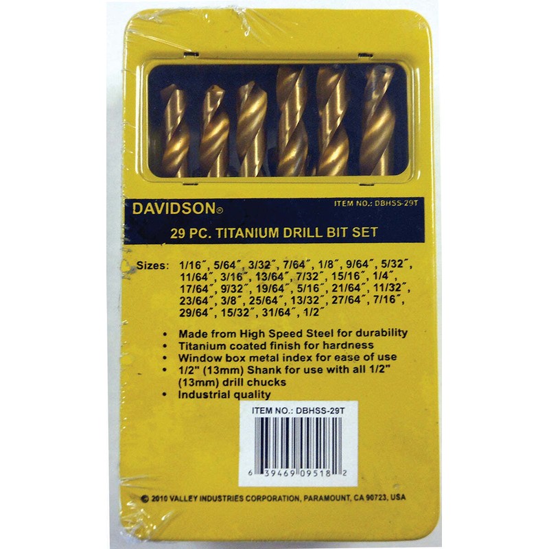 Davidson 29pc Titanium Drill Bit Set with Metal Storage Case