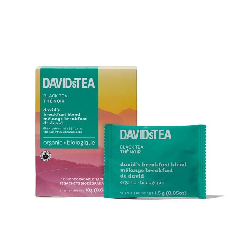 DAVIDsTEA Organic David's Breakfast Blend Black Tea, high caffeine, 12 tea bags