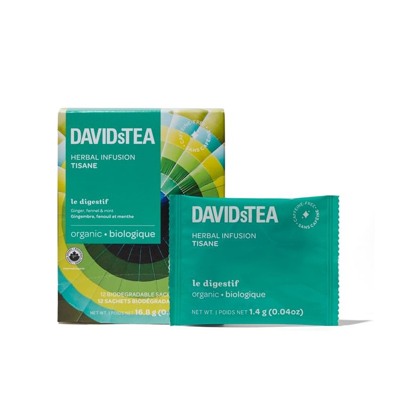 DAVIDsTEA Organic Le Digestif Herbal Tea, caffeine-free, 12 tea bags