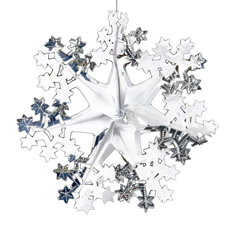 Davies Silver/White Christmas 2 Tone Foil Ceiling Decorations - 40cm Star Sno...
