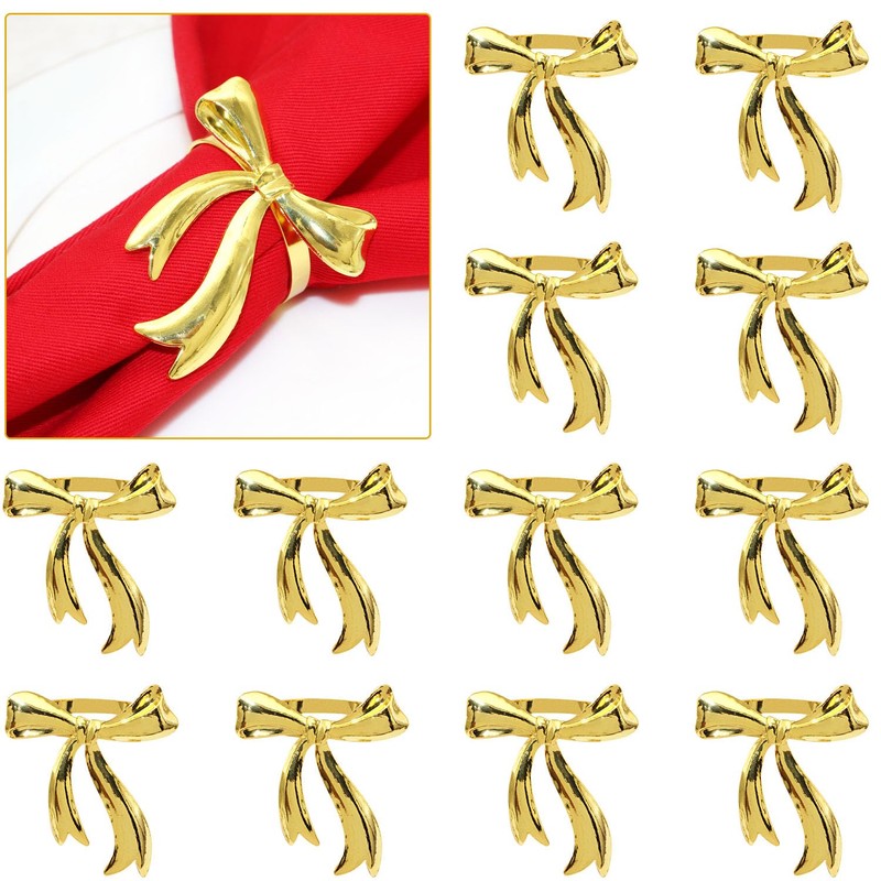 Davifina 12Pcs Bows Napkin Ring Gold Bow Tie Napkin Holder Metal Bowknot Napkin Buckles for Valentine's Day Wedding Birthday Baby Shower Christmas Table Decoration