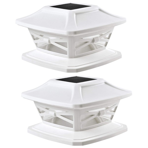 Davinci Lighting Flexfit Solar Outdoor Post Cap Lights - Includes Bases for 4x4 5x5 6x6 Wooden Posts - Bright LED Light - Pearl White (2 Pack)