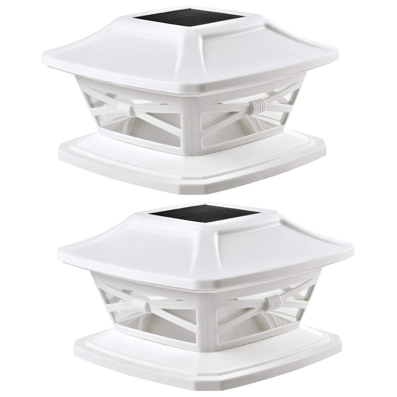 Davinci Lighting FlexFit Solar Post Cap Lights turn your posts into outdoor lights. These bright and beautiful solar powered lamps charge in sunlight and turn on automatically at night. **Versatile:** \- One base fits 4 inch 5 inch and 6 inch WOODEN posts. For wood posts only. \- Can be also set on any flat surface. \- Perfect for fence, deck, patio, path, dock, railing, or garden lighting. **Cordless:** \- Place them anywhere, without worrying about wires. **Easy to Install:** \- Avoid the cost and headache of hiring an electrician or contractor. \- Simply screw onto your post. **Built to Last:** \- We've worked hard to build the best lights that deliver great value. \- UV protected housing and matte textured finish. \- Weatherproof for use in rain, sleet, or snow. \- Lifelong LEDs. **Specifications:** \- 25 lumens brightness. \- Warm white (3000 Kelvin) LED. \- 3.2v 300mAh lithium ion 14500 (AA size) rechargeable battery (replaceable). \- Advanced monocrystalline solar panel. \- 7-8 hours of battery life after 8 hours of direct sunlight. **PLEASE NOTE: \- The base's rounded footprint leaves the corners of a 6x6 post slightly exposed. \- These post caps will fit any wooden post with true dimensions between 3.5 to 5.5 inches. **