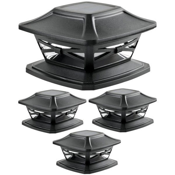 Davinci Lighting Flexfit Solar Outdoor Post Cap Lights - Includes Bases for 4x4 5x5 6x6 Wooden Posts - Bright LED Light - Slate Black (4 Pack)