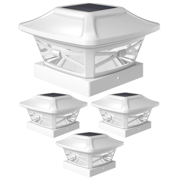Davinci Lighting Renaissance Solar Outdoor Post Cap Lights - Includes Bases for 4x4 5x5 6x6 Posts - Bright LED Light - Pearl White (4 Pack)