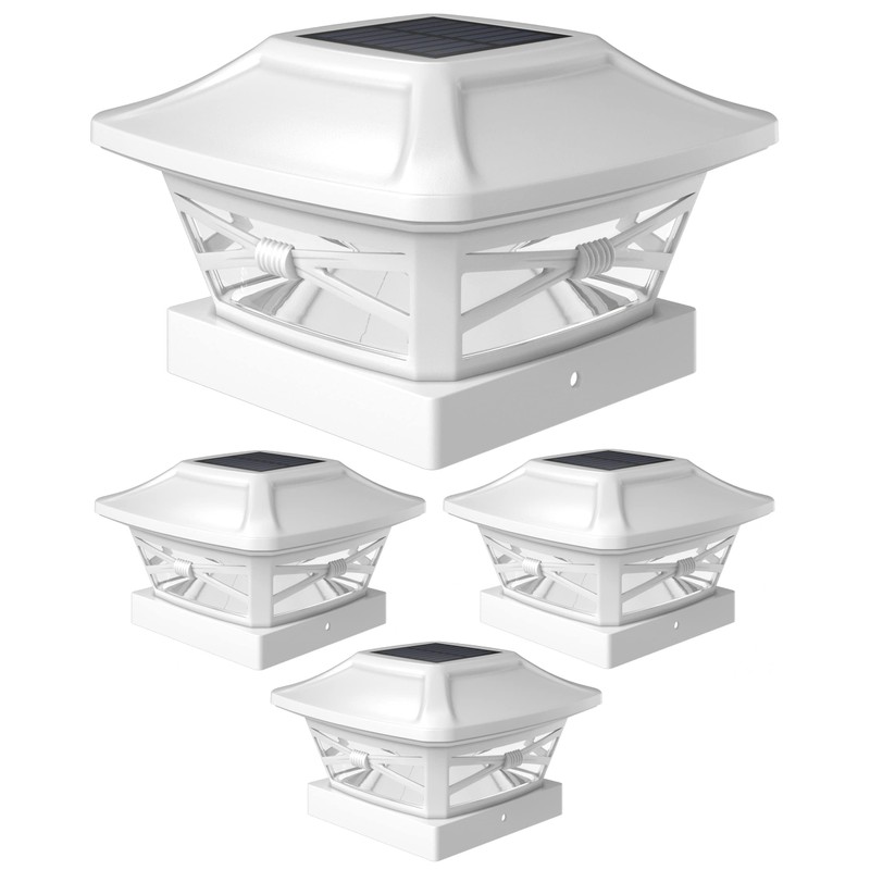 Davinci Lighting Renaissance Solar Post Cap Lights turn your posts into outdoor lights. These bright and beautiful solar powered lamps charge in sunlight and turn on automatically at night. **Versatile:** \- Fixtures fit 4 inch vinyl posts, as well as 4 inch 5 inch and 6 inch wood posts. \- Can be also set on any flat surface. \- Perfect for fence, deck, patio, path, dock, railing, or garden lighting. **Cordless:** \- Place them anywhere, without worrying about wires. **Easy to Install:** \- Avoid the cost and headache of hiring an electrician or contractor. \- Simply screw onto your post. **Built to Last:** \- We've worked hard to build the best lights that deliver great value. \- UV protected housing and matte textured finish. \- Weatherproof for use in rain, sleet, or snow. \- Lifelong LEDs. **Specifications:** \- 25 lumens brightness. \- Warm white (3000 Kelvin) LED. \- 3.2v 300mAh lithium ion 14500 (AA size) rechargeable battery (replaceable). \- Advanced monocrystalline solar panel. \- 7-8 hours of battery life after 8 hours of direct sunlight. **Included Base Sizes: \- 4 Inch Vinyl: 4" x 4" \- 4 Inch Wood: 3.5" x 3.5" \- 5 Inch Wood: 4.5" x 4.5" \- 6 Inch Wood: 5.5" x 5.5" **