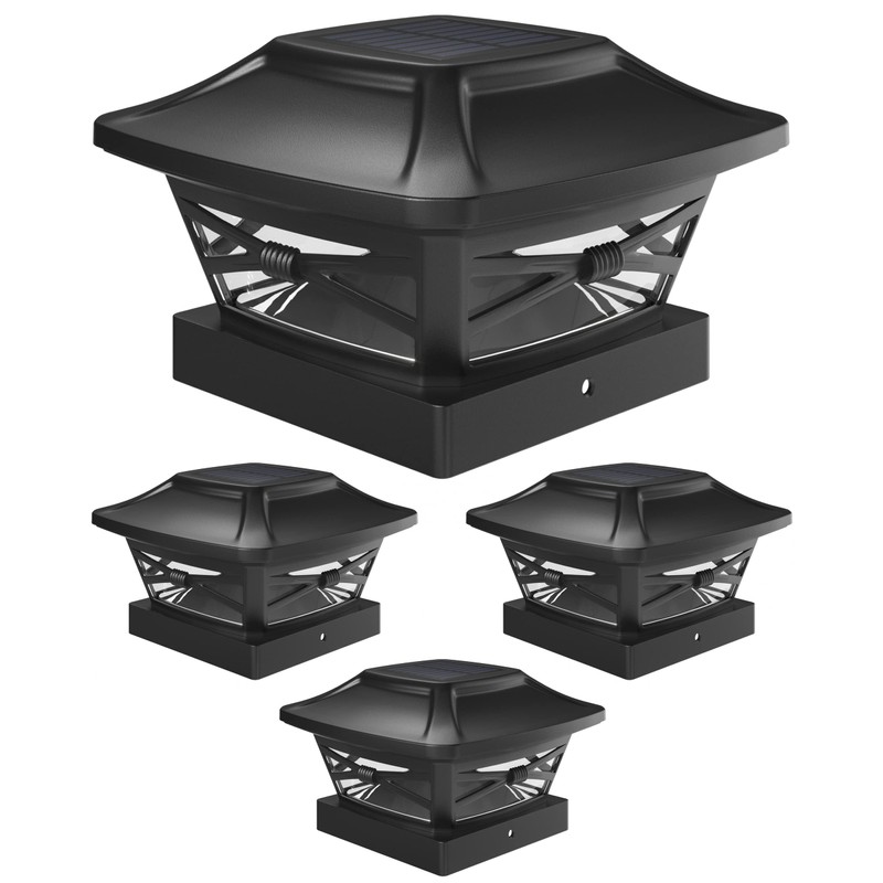 Davinci Lighting Renaissance Solar Outdoor Post Cap Lights - Includes Bases for 4x4 5x5 6x6 Posts - Bright LED Light - Slate Black (4 Pack)
