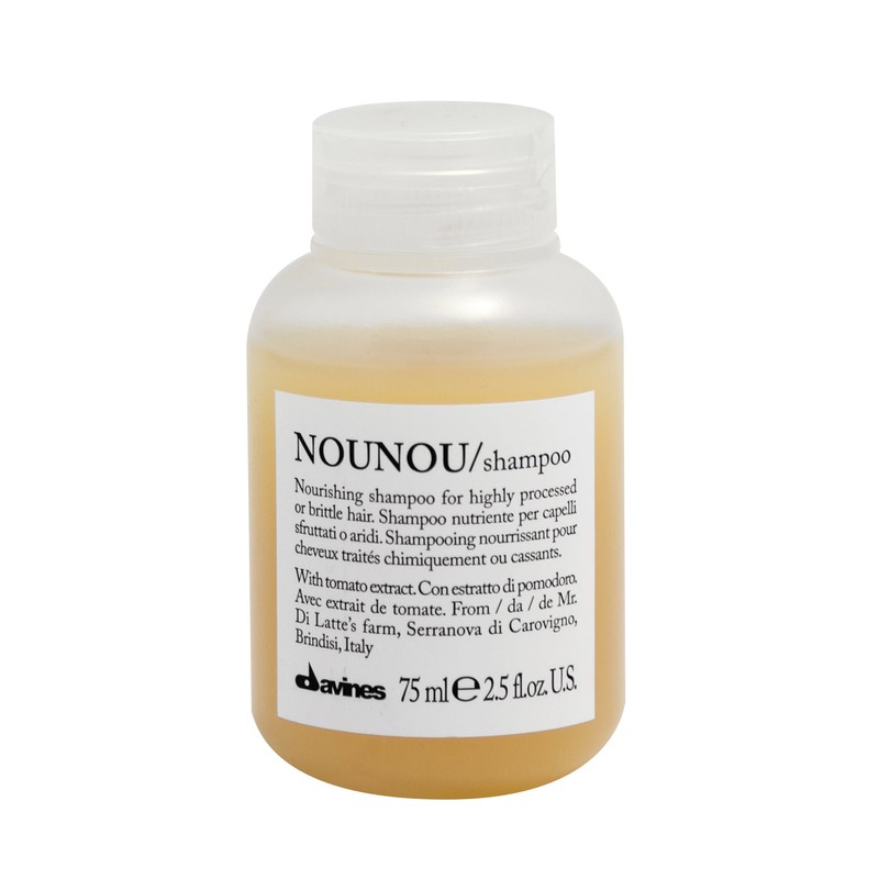 Davines Essentials NOUNOU Shampoo 75ml is a nourishing shampoo designed to gently cleanse treated hair, giving it body and nourishment.