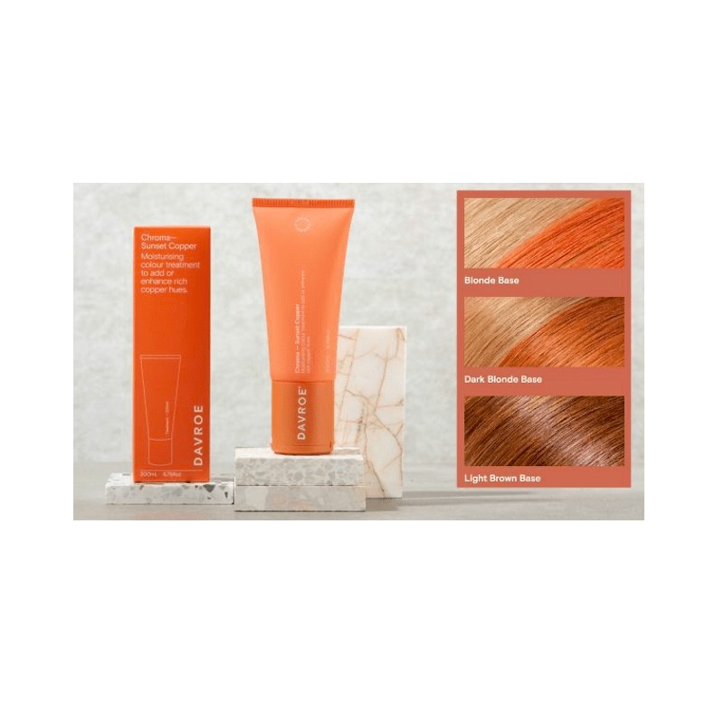 What are the benefits and features of Davroe Chroma Colour Treatment - Sunset Copper 200ml?- Moisture-rich colour treatment, formulated to gently deposit pigment on the hair.