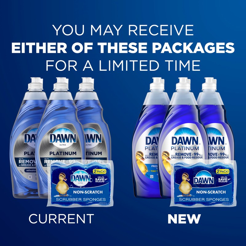 If you're looking for the PERFECT PAIR, look no further. Get your ultimate clean and be the kitchen hero with the Grease Cleaning power of Dawn dish soap paired with the Dawn Non-Scratch Scrubber Sponge. Dawn Ultra Platinum has 4X MORE Grease Cleaning Power per drop, so you can get through more dishes with less. The Dawn Non-Scratch Scrubber Sponge has a scrubber side that easily takes off grease and baked-on messes, while the absorbant cellulose side is gentle yet mighty to get dishes sparkling clean. Cleaning ingredients per drop vs. non-ultra Dawn