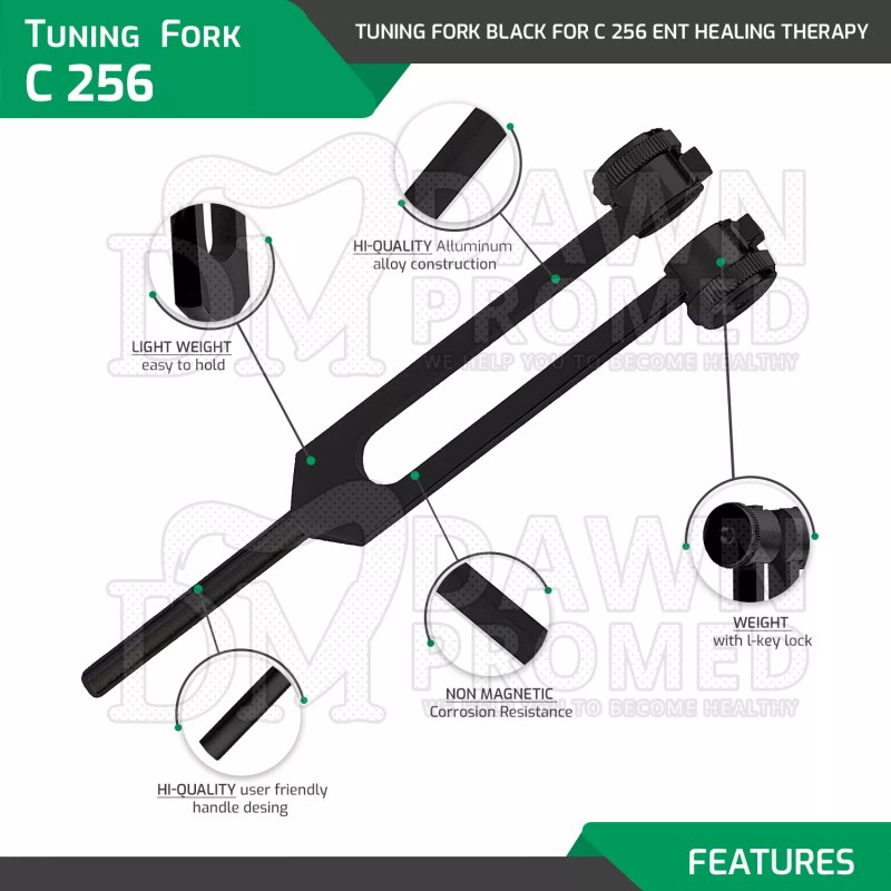 DawnProMed AMT 256 Hz Medical-Grade Tuning Fork With Fixed Weights, Black Coated German Gr