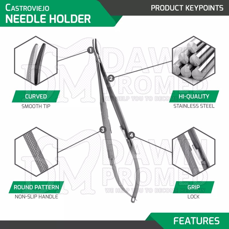- Thanks to their springs, Castroviejo microsurgical needle holders offer flexibility and precision during surgery.