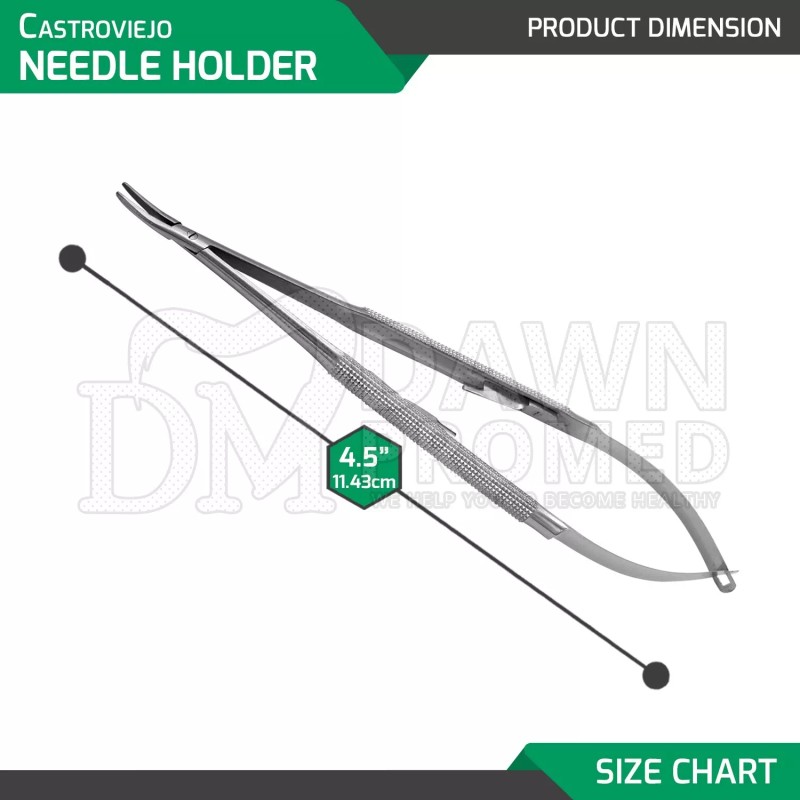 DawnProMed Castroviejo Needle Holder 4.5" Curved Smooth Tip Micro Surgical Inst German Gr