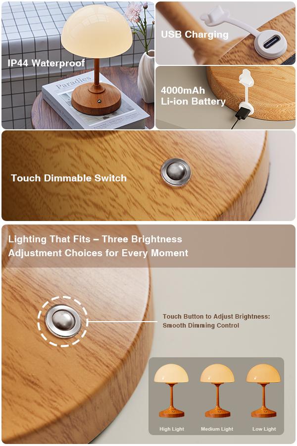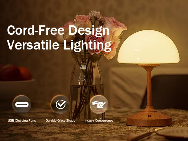 Discover the convenience and versatility of the Mushroom Cordless Lamp Rechargeable Lamp, designed to meet your lighting needs in the kitchen, bedroom, or dining area.
