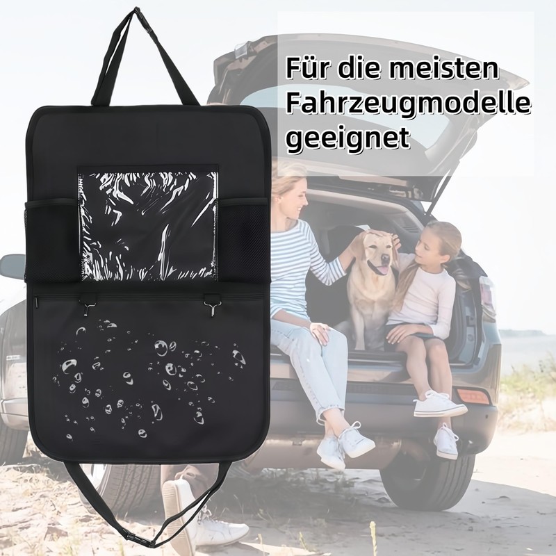 - Practical storage solution: With a transparent PVC pocket for tablets, two elastic mesh pockets and a large zip pocket, this car seat organiser offers plenty of storage space for various items such as water bottles, books and toys.