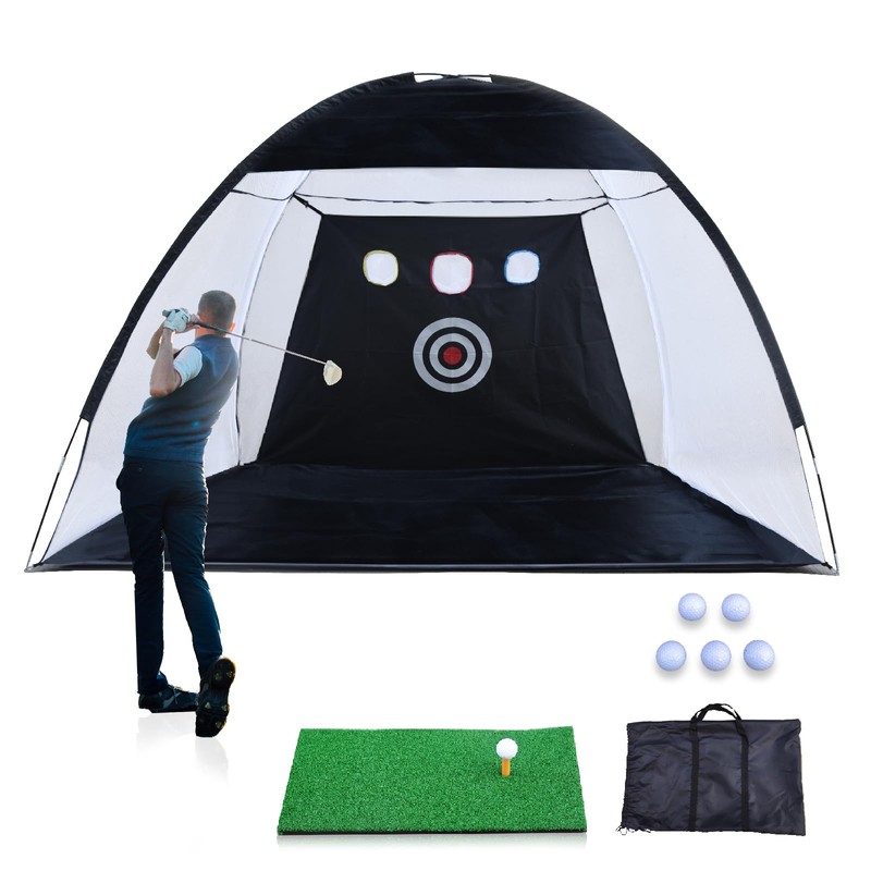 - 【All-Inclusive Set】: The golf net comes with a target, mat, balls, tee, and carrying bag, providing you with everything you need for a comprehensive golf practice session. The target helps improve your aim, while the mat simulates the feel of a real golf course.