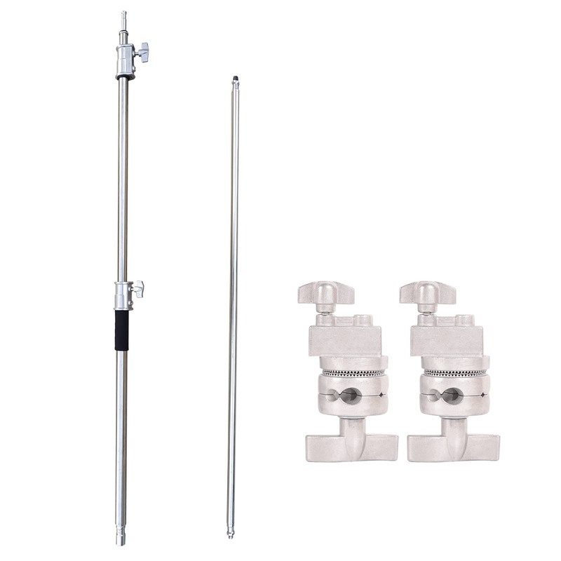- 【Extension Arm】Holding arm length is 50inch. Equipped with 1/4” and 3/8” screws at both ends, the extension arm can mount most photographic accessories with ease. Grip heads enable you to keep the arm firmly in place and set different angles effortlessly