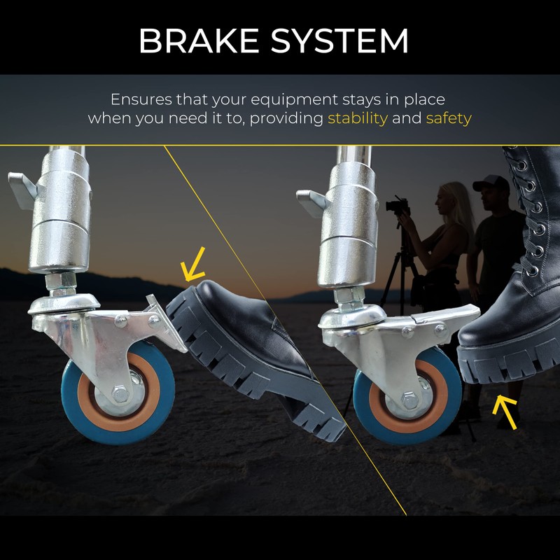 Dawot Professional Swivel Caster Wheels Set, Heavy Duty Photography C Stand Rolling Metal Rubber Wheels with Brake for Photo Video Studio Shooting, Foldable Light Stand Tripod PU Light Stand Wheel