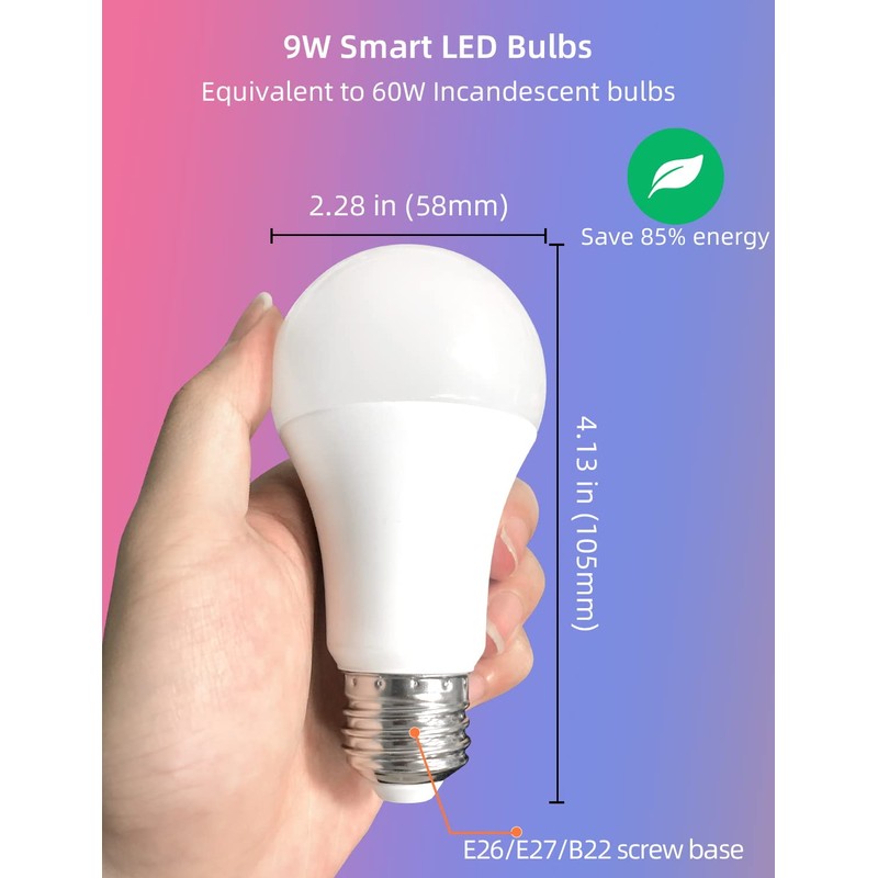 Color Changing & Warm White: our smart light bulbs can achieve up to 25 million colors, 0%-100% dimming, 2700K warm - 6500K cool light via App, no dimmer or Hub required.