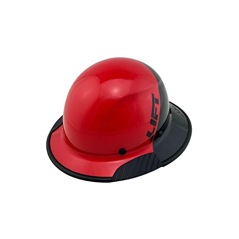 DAX Fiberglass Composite Hard Hat with Hard Hat Tote- Full Brim, 5050 Glossy Black and Red with Protective Edging
