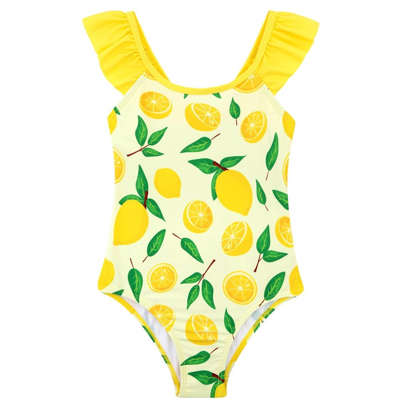DAXIANG Toddler Girl Bathing Suit One Piece Girls Swimsuit Floral Ruffles Hawaiian Swim Suit Yellow Lemon 8 Year 9 Year