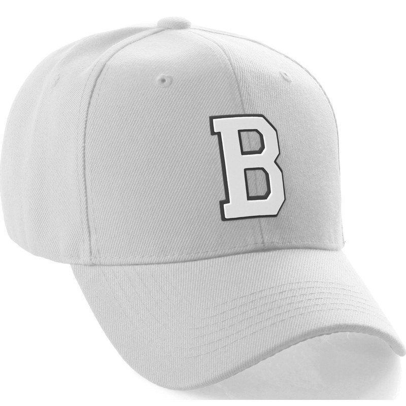 Daxton Classic Baseball Hat Custom A to Z Initial Team Black White Letter, White Cap Letter B
