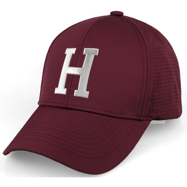 Daxton Performance Cool Tech Baseball Hat - Burgundy Cap, Silver Logo Letter H