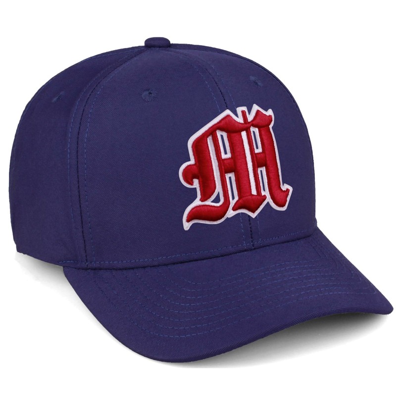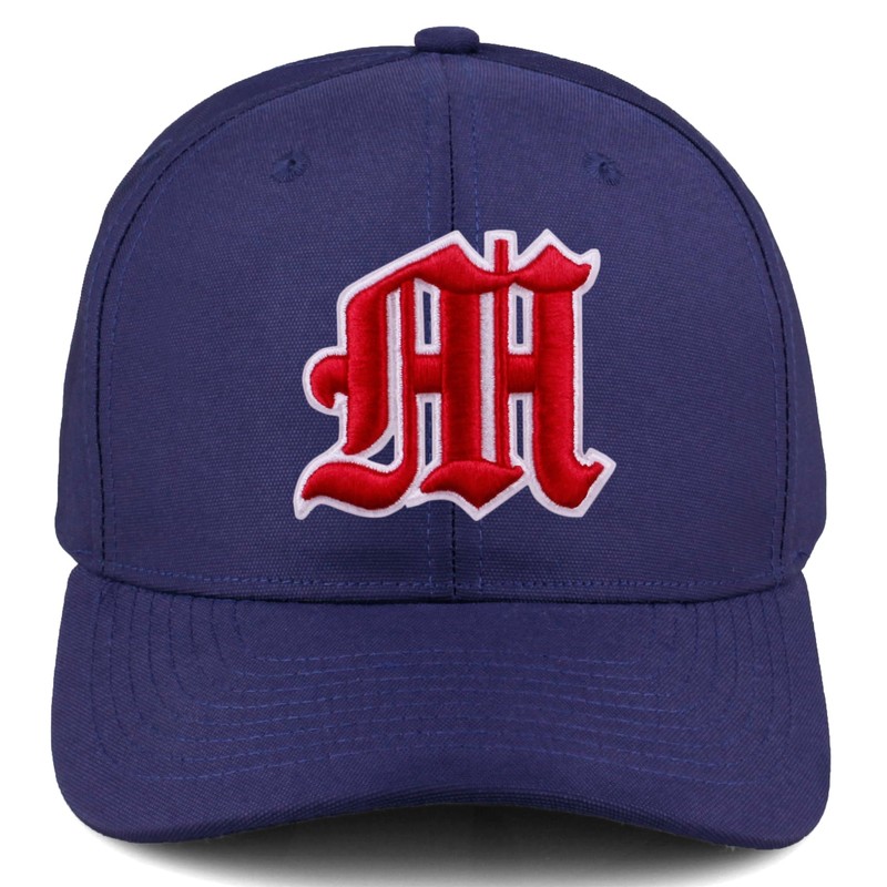 Daxton Premium Mid Profile Hat Semi Curved Visor Navy Cap White Red Gothic Embroidered, Letter M