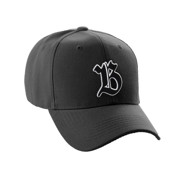 Daxton Structured Baseball Hat Cap Old English A to Z Letter Number Initial-Black, Letter B