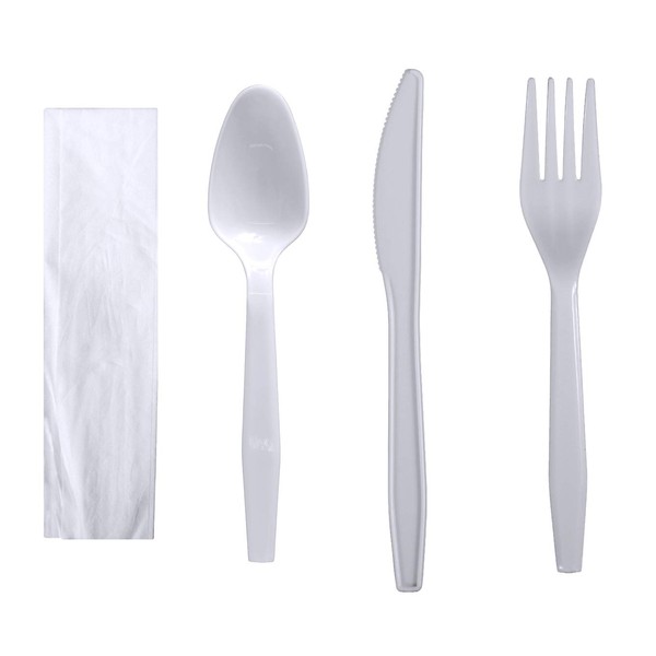 - Packed 500 medium heavyweight polypropylene cutlery kits per case