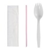 Daxwell Plastic Cutlery Kits, Medium Weight Polypropylene (PP), Spork, Spike Straw, Napkin, White, B10003081 (Case of 1,000)
